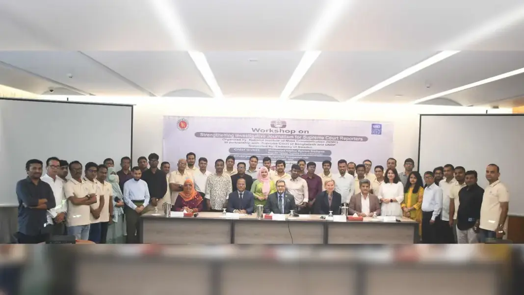 জাতীয় গণমাধ্যম ইনস্টিটিউট (নিমকো)-এর উদ্যোগে এবং সুপ্রিম কোর্ট ও ইউএনডিপির যৌথ অংশীদারত্বে ও সুইডেন দূতাবাসের সহায়তায় ‘Strengthening Investigative Journalism for Supreme Court Reporters’ শীর্ষক দিনব্যাপী কর্মশালা অনুষ্ঠিত হয়েছে। ‘ল’ বিটের ৪০ জন সাংবাদিক এই কর্মশালায় অংশগ্রহণ করেন।