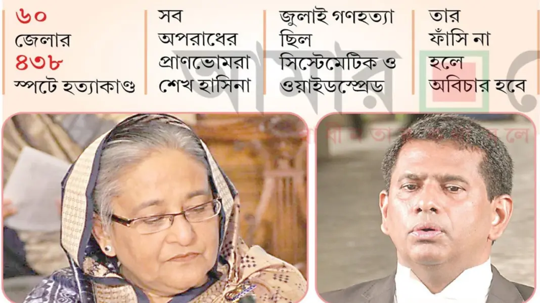 জুলাই গণঅভ্যুত্থানে হাজারো ছাত্র-জনতাকে হত্যার দায়ে স্বৈরাচার শেখ হাসিনার সর্বোচ্চ শাস্তি মৃত্যুদণ্ড চেয়েছে রাষ্ট্রপক্ষ। যুক্তিতর্কের শেষ দিনে গতকাল বৃহস্পতিবার আন্তর্জাতিক অপরাধ ট্রাইব্যুনালে দেওয়া বক্তব্যে চিফ প্রসিকিউটর মোহাম্মদ তাজুল ইসলাম বলেন, এ মামলায় শেখ হাসিনার সর্বোচ্চ শাস্তি হতে হবে। তা না হলে জাতির প্রতি অবিচার করা হবে। ১৪০০ মানুষকে হত্যার দায়ে তাকে ১৪০০ বার ফাঁসি দেওয়া উচিত। যুক্তিতর্ক উপস্থাপনের পঞ্চম ও সমাপনী দিনে তিনি এসব কথা বলেন।