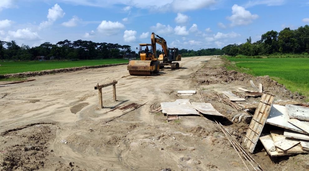 সওজ সূত্র জানায়, বাদাঘাট থেকে এয়ারপোর্ট পর্যন্ত ৮ কিলোমিটার সড়কের মধ্যে ৩ কিলোমিটারের কাজ এখনো বাকি আছে। ধুপনিগুল মৌজার অন্তভর্‚ক্ত ওই এলাকায় সওজের ৪০ ফুট প্রশস্ত জায়গা ছিল। কিন্তু স্থানীয়রা ওই ৪০ ফুটে নিজেদের মালিকানাধীন জায়গা রয়েছে দাবি করে আদালতে ৪টি মামলা দায়ের করেন। মামলা নিষ্পত্তি না হওয়ায় সওজ বাধ্য হয়ে সড়কের এলাইনমেন্ট ও নকশা পরিবর্তন করে। বর্তমানে ওই অংশের কাজ প্রায় বন্ধ।